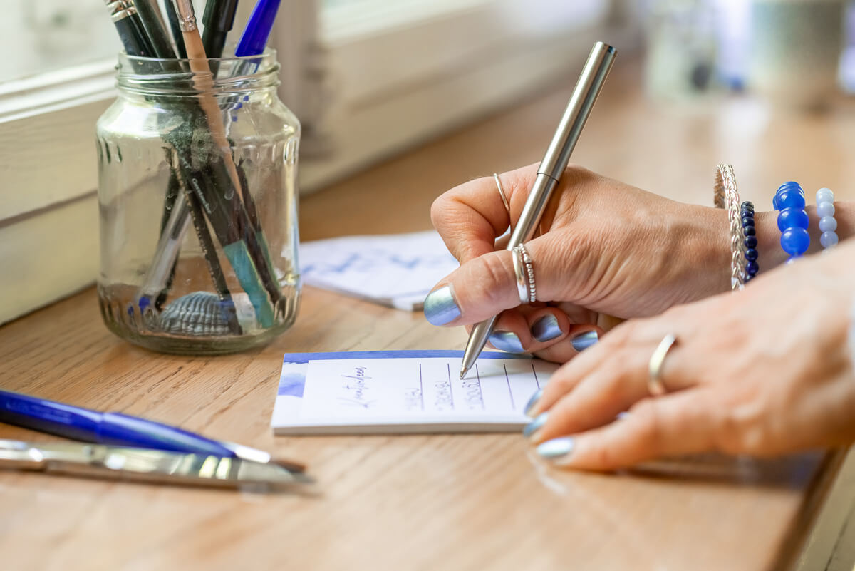 das Notieren kreativer Gedanken, Skizzen oder Ideen